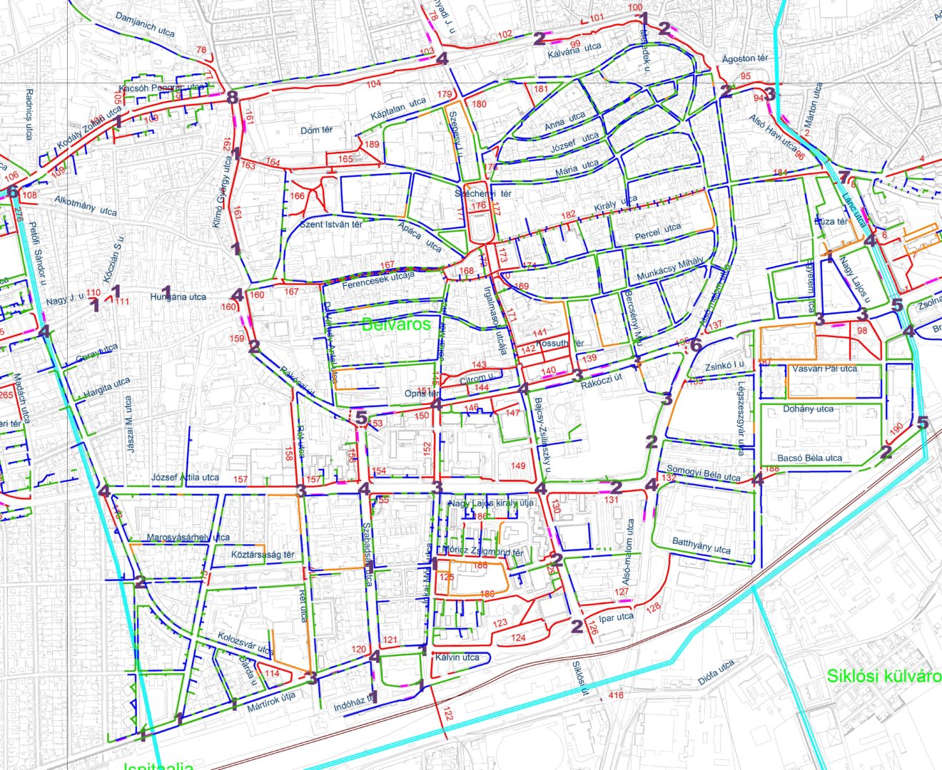 - Belváros Dél (Aradi vértanúk útja – Kálvária u. – Ágoston tér – Alsóhavi u. – Lánc u. – Bacsó Béla u. – Légszeszgyár utca – Batthyány u. – Ipar u. – Vasút u. – Indóház tér – Mártírok útja – Kandó K. u. – Petőfi u. – Hungária u. – Ifjúság útja – Édesanyák útja – Nyár u. – Bálicsi út – Boszorkány u. – Jurisics M. u. – Bornemissza G. u. – Damjanich u. által határolt terület)