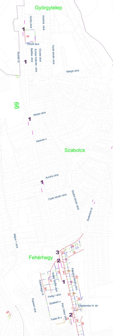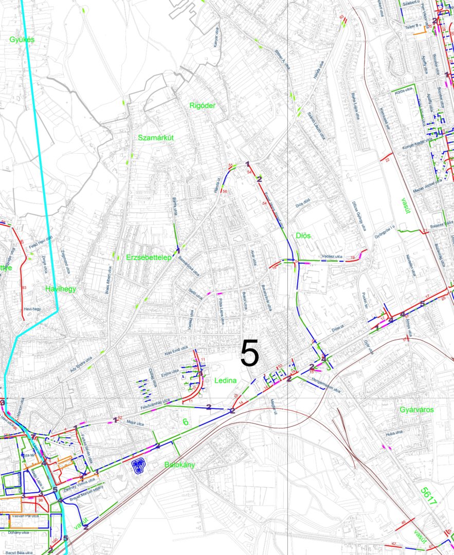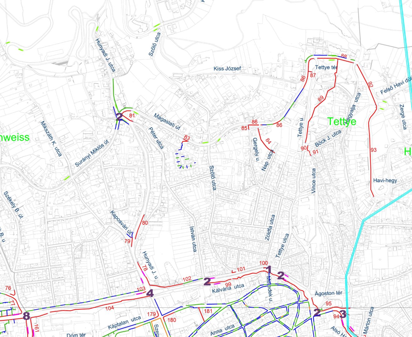 - – kék, zöld, sárga színnel jelölt szakaszok