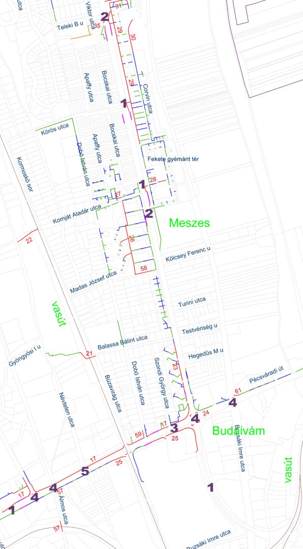 - Mecsek – Nyugat (Donátus – Budai Dezső közpark – Székely Bertalan u. – Damjanich – Bornemissza u. – Jurisics M . u. – Boszorkány u. – Bálicsi út által határolt terület)