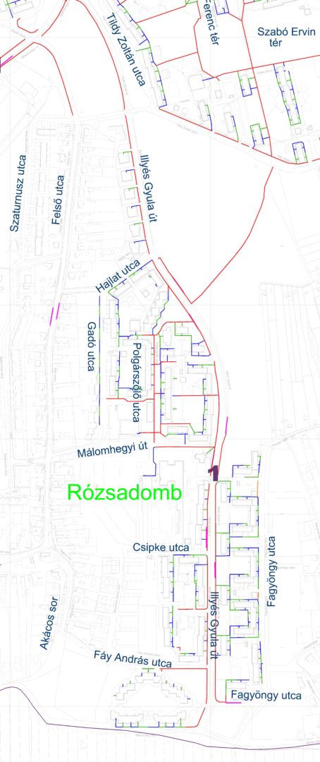 - Rózsadomb (Tildy Z. u. – Felső u. – Mécsvirá u. – 58-as út által határolt terület)