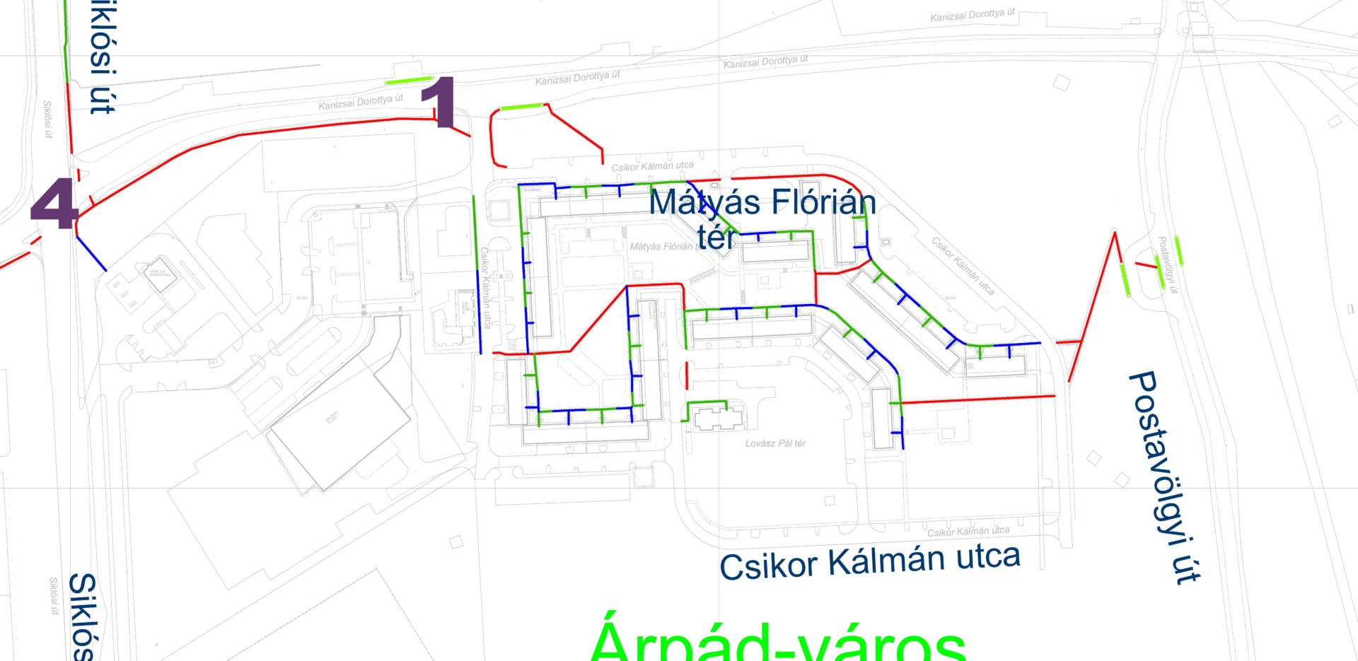 - Központ tömb (Nagy Imre út – Maléter Pál út – Aidinger J. u. által határolt terület)