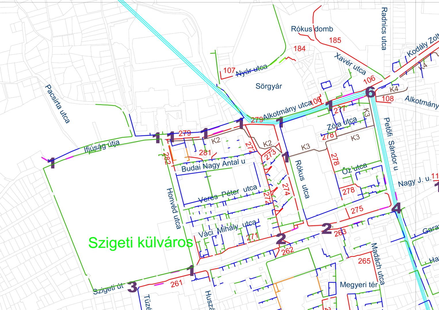 - Szigeti észak (Ifjúság útja – Alkotmány u. – Petőfi u. – Hungária út – Szigeti út – Kürt u. által határolt terület)